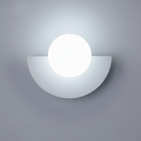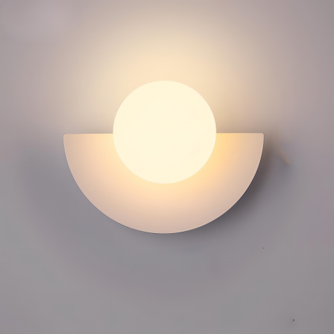 Den här vägglampetten ger en grafisk touch till dina väggar tack vare sin halvmåneform och sin centrala ljusboll. Den sprider ett mjukt och jämnt ljus, perfekt för att skapa en lugn atmosfär i vardagsrummet, sovrummet eller hallen. Finns i flera färger och passar lätt in i alla inredningsstilar.